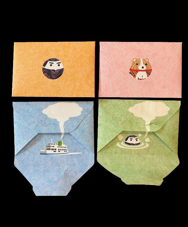 4色4通りの鹿児島ならではの柄が描かれています 一筆箋と一緒にいかがでしょうか